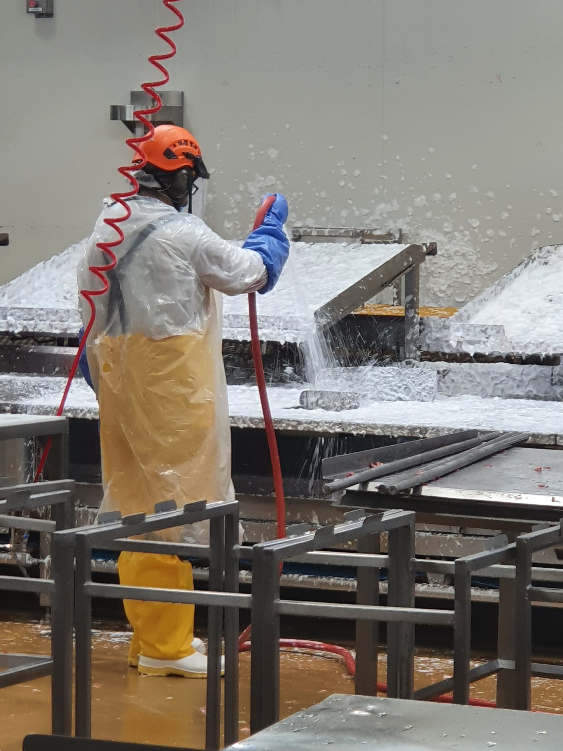 A good example of this would be using a chlorinated foam detergent, then a quat sanitiser in the hose straight after. These two chemicals are incompatible as one is cationic and the other anionic, which lead to deposits occuring in the foam hoses. These are a precipitate formed over time and are virtually insoluble so quite difficult to remove.